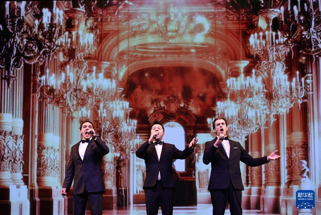 1月20日,在法国巴黎举行的“金蛇献瑞”巴黎春节联欢晚会上,巴黎歌剧院演员演唱《今夜无人入睡》。