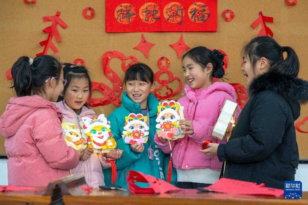 1月22日,在浙江省湖州市德清县乾元镇直街社区新时代文明实践点,乾元镇中心小学学生在舞龙。