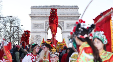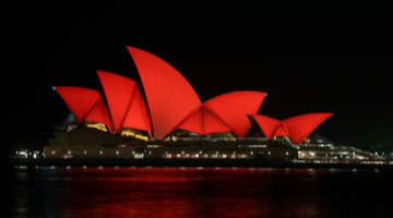 2月4日,澳大利亚悉尼歌剧院点亮“中国红”,庆祝中国农历新年。