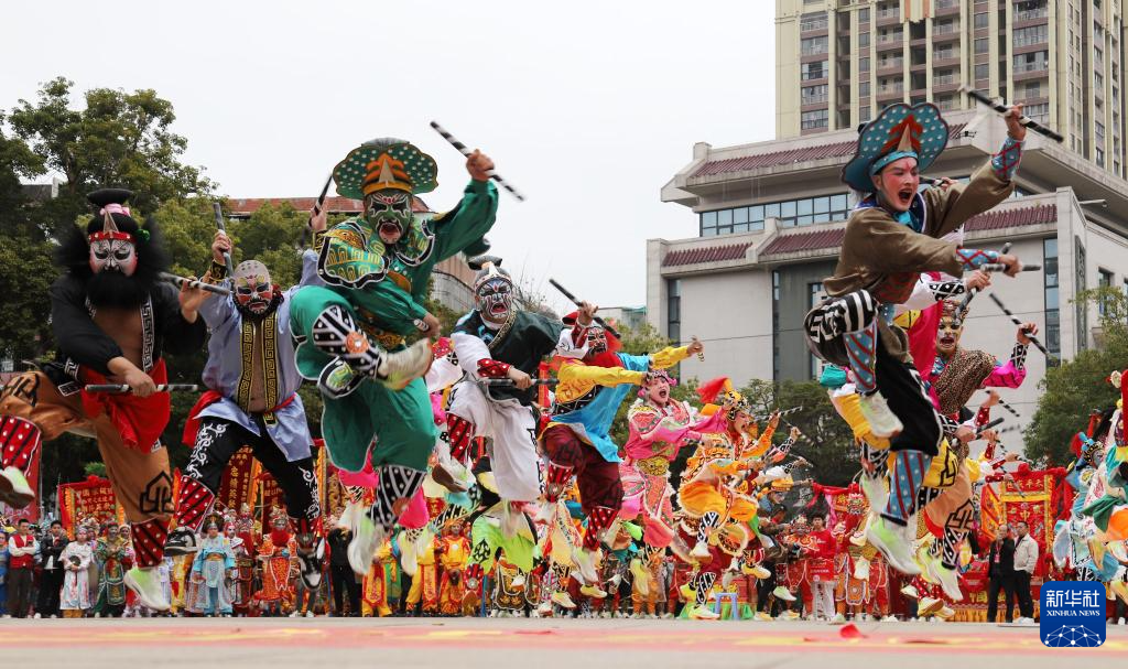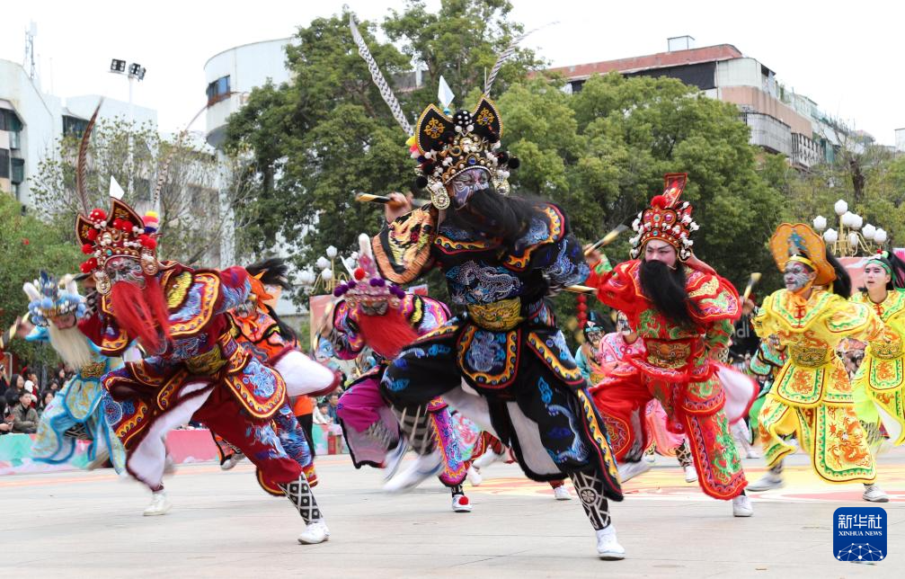 2月2日,英歌队在广东汕头潮阳区“中华英歌 舞动潮阳——2025年春节潮阳英歌嘉年华活动”中表演。