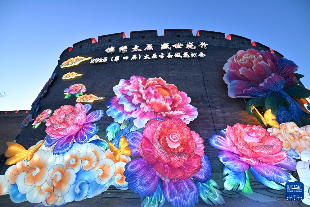 新春伊始,在太原市晋源区太原古县城举办的2025太原古县城花灯会上,各类花灯流光溢彩、璀璨夺目,吸引游人前来观赏。
