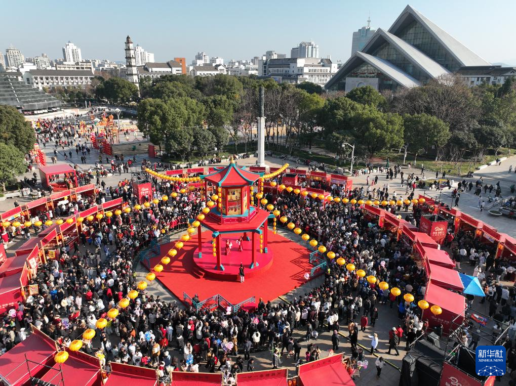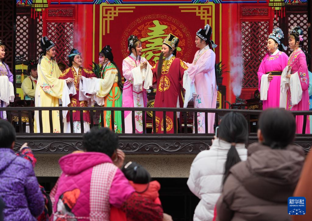 在绍兴市越城区,群众在“绍兴古城过大年”活动上欣赏越剧表演(1月29日摄)。