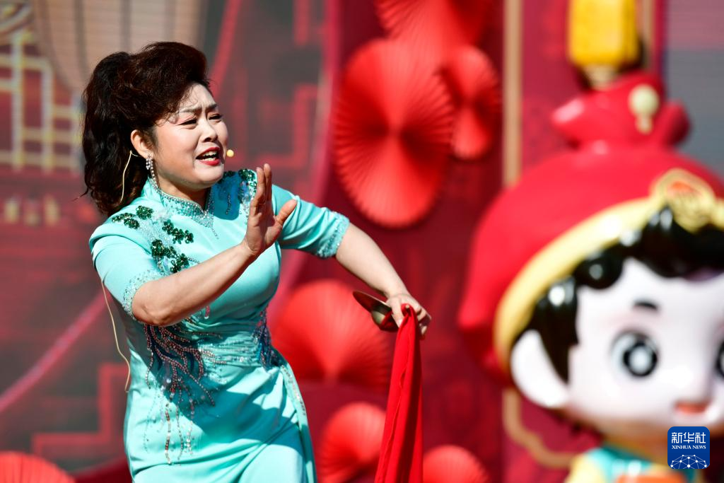 2月9日,河北省沧州市的曲艺艺人朱玉凤在胡集书会上表演西河大鼓《罗成算卦》。