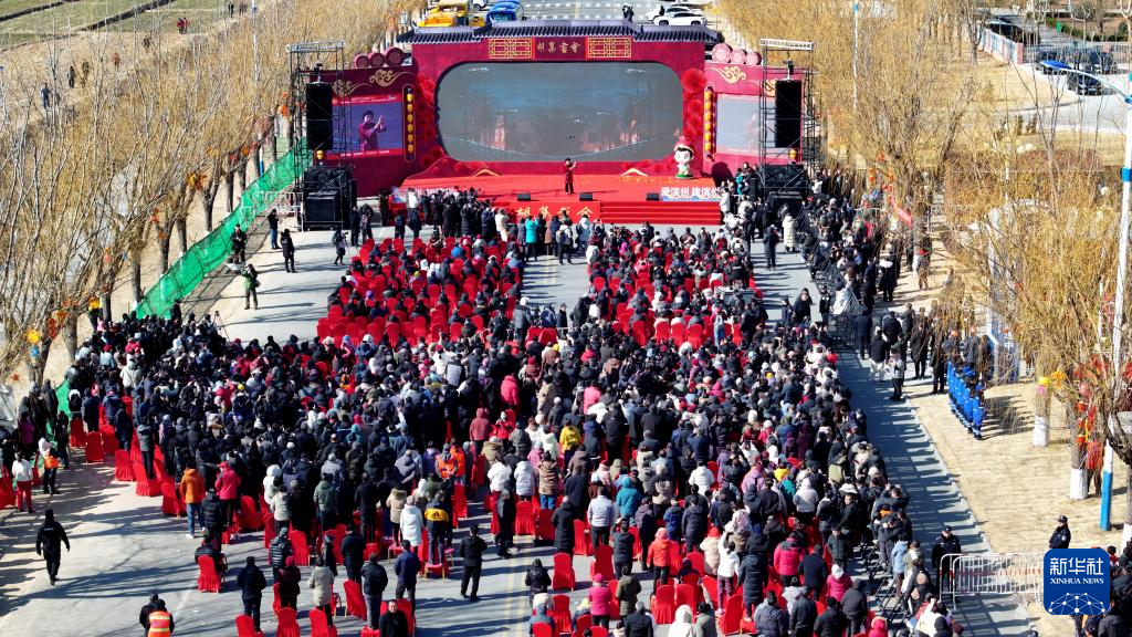 2月9日,观众在观看中国曲协“送欢笑到基层”走进惠民专场演出(无人机照片)。