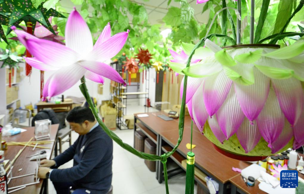 2月10日,马海捷在他的工作室制作传统样式的小型灯彩。