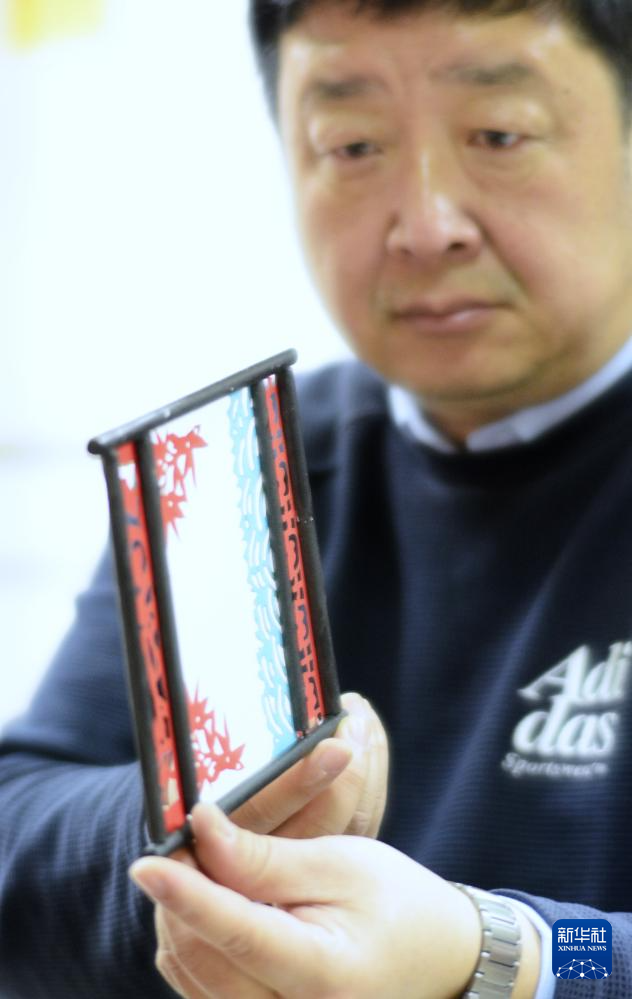 2月10日,马海捷展示他制作的传统样式灯彩。