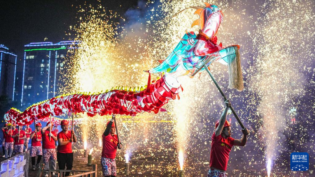 2月11日晚,人们在台江县参加“舞龙嘘花”活动。