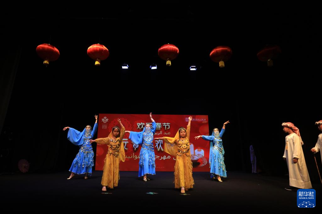 2月12日,演员在约旦首都安曼举办的“欢乐春节·元宵联欢会”上表演舞蹈。