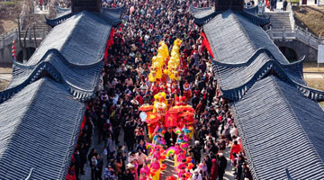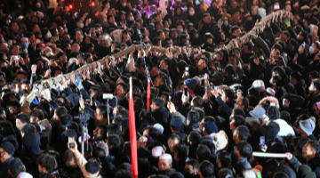 演出结束后小演员们与家人合影留念(2月11日摄)。