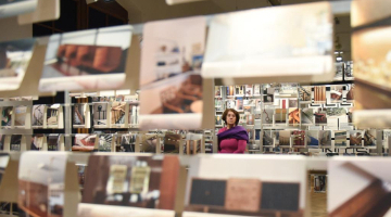 2月21日,在伊朗德黑兰举行的第九届伊朗“曙光旬”国际手工艺品节上,一名女子挑选手工艺品。