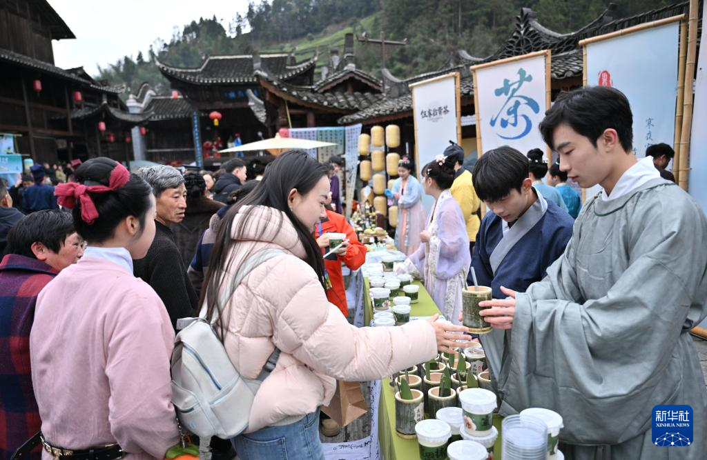 当日,湖北省恩施土家族苗族自治州宣恩县梦回“茶马古道”春茶品鉴活动启幕,“宋风雅集”茶市、茶园服装秀、茶山非遗展演等系列活动,吸引众多游客参与其中品味春茶,沉浸式感受茶乡的魅力。
