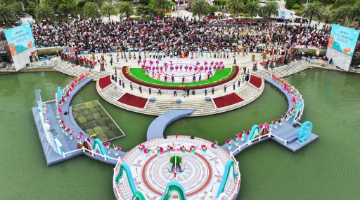 4月6日,选手参加会船比赛(无人机照片)。