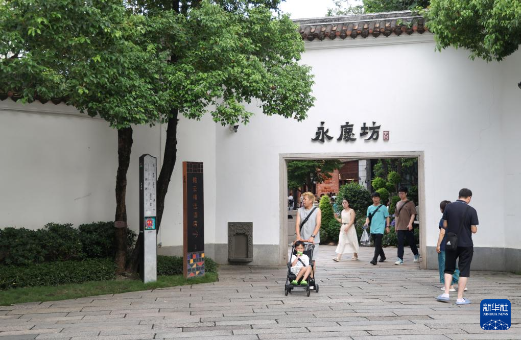 游客在永庆坊参观、休闲(7月11日摄)。