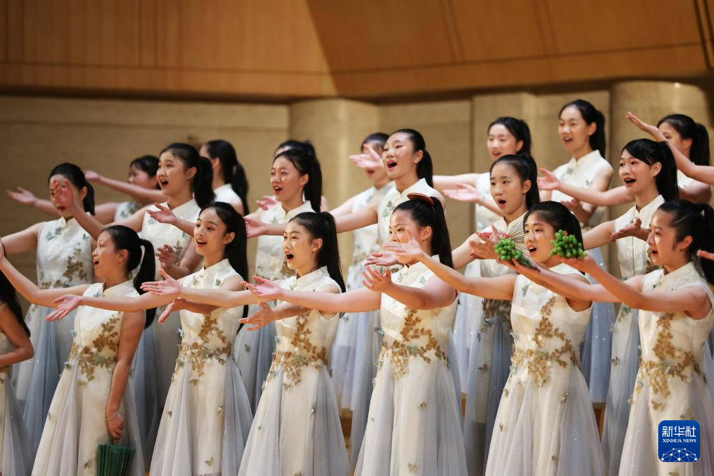 7月14日,在中国交响乐团,河北省正定中学合唱团在演唱。