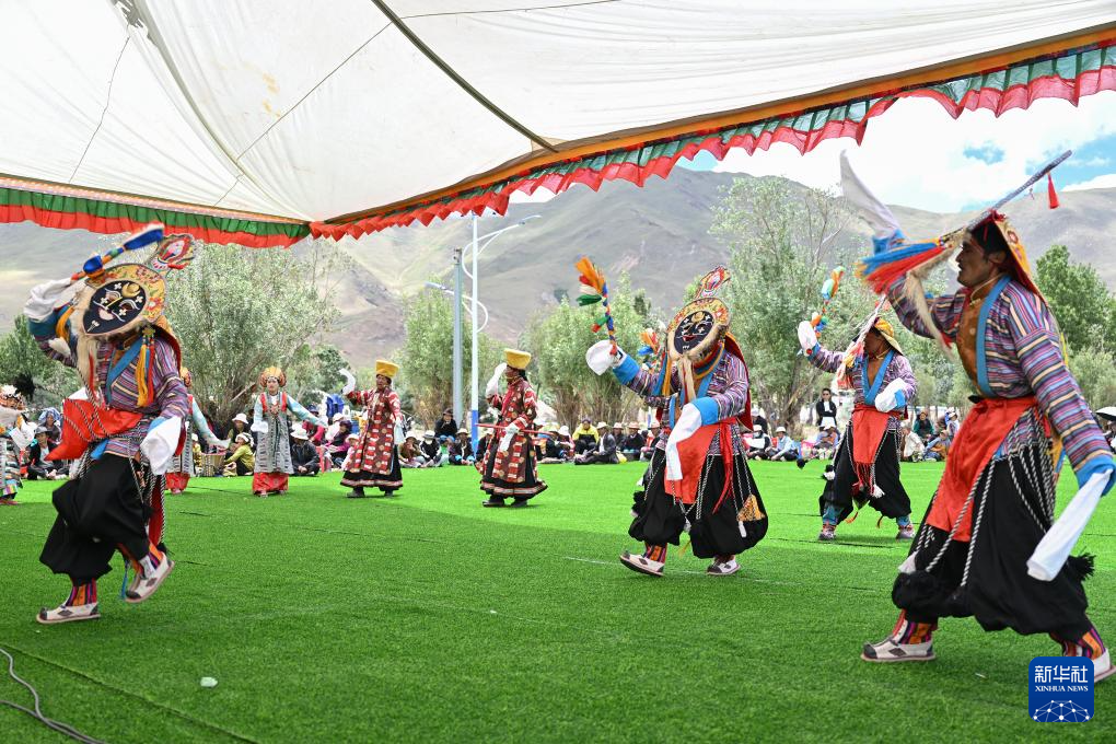 7月16日,民间藏戏表演队在南木林县非遗公园内表演湘巴藏戏。