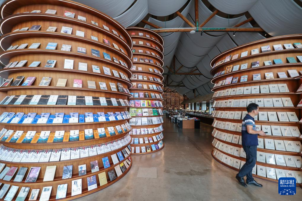这是9月19日拍摄在沈荡镇拍摄的谷仓文化产业园书店。谷仓文化产业园由之前的国营粮仓改建而成,也是当地的网红打卡点之一。