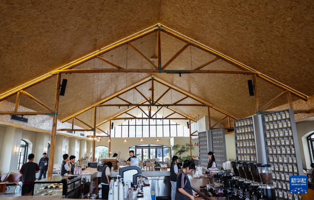 9月19日,游客在沈荡镇谷仓文化产业园的咖啡馆内休憩。谷仓文化产业园由之前的国营粮仓改建而成,也是当地的网红打卡点之一。