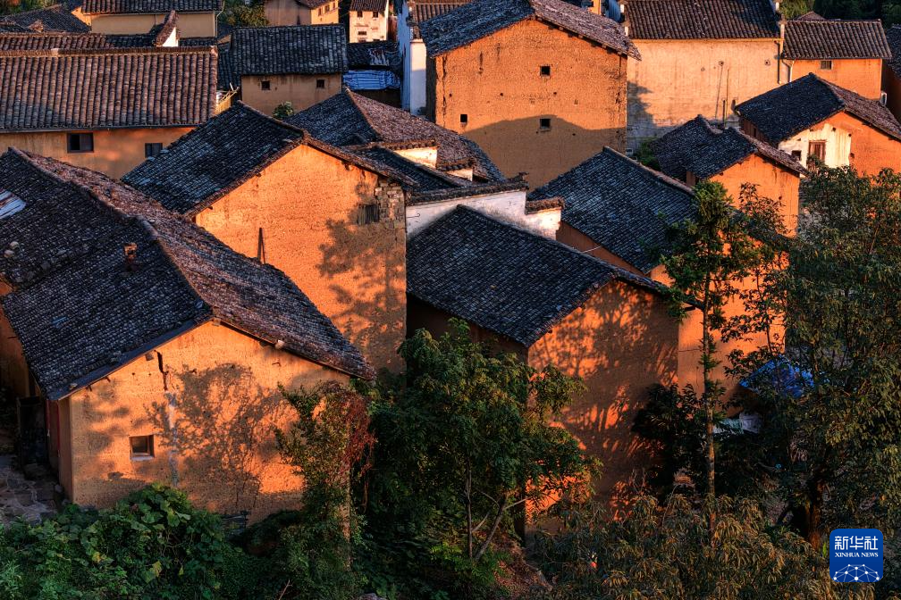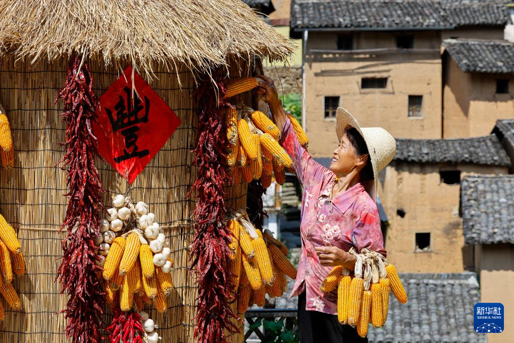 时值秋收时节,村民们利用晴好天气,将辣椒、玉米、山核桃等农作物晾晒在房前屋后,形成独具特色的“晒秋”景观。