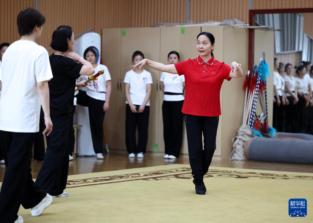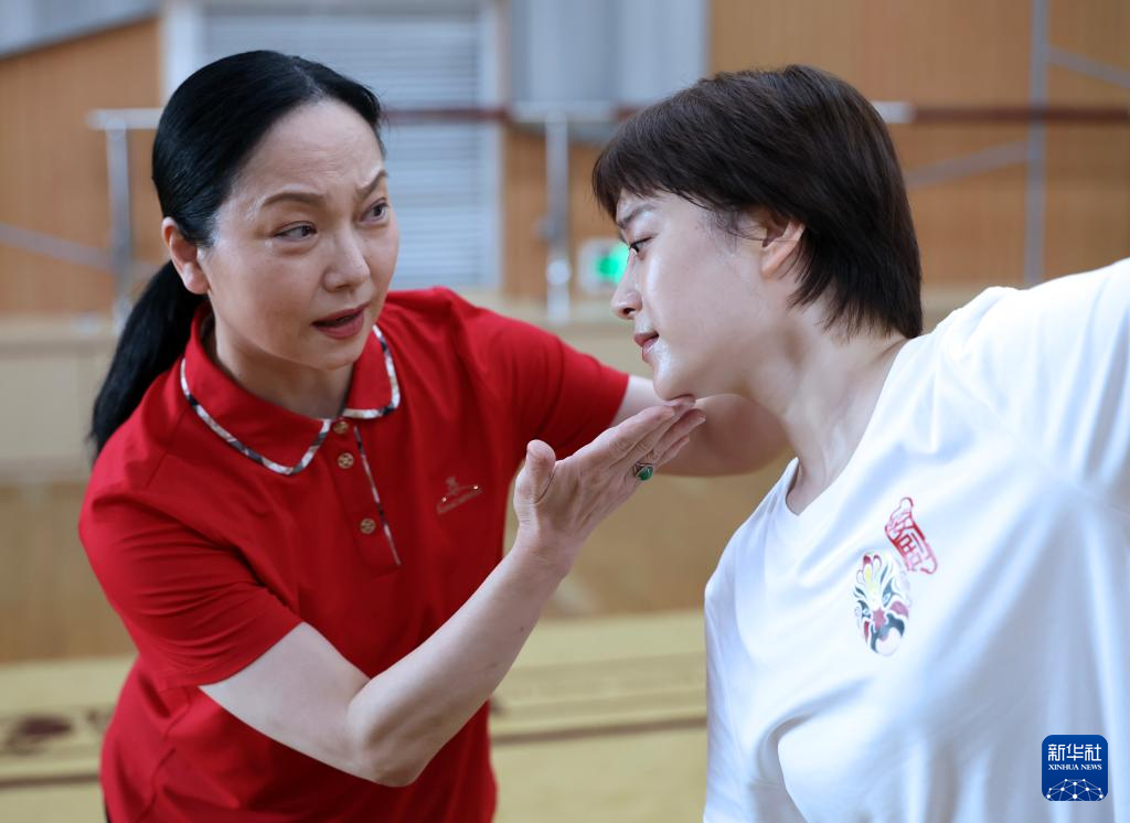 10月12日,二度“梅花奖”获得者、全国三八红旗手陈美兰(右一)在指导演员排练剧目。