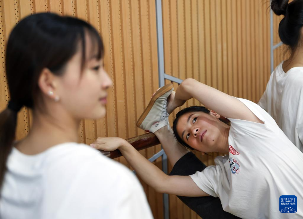 10月12日,浙江婺剧艺术研究院的演员在排练厅内练习基本功。