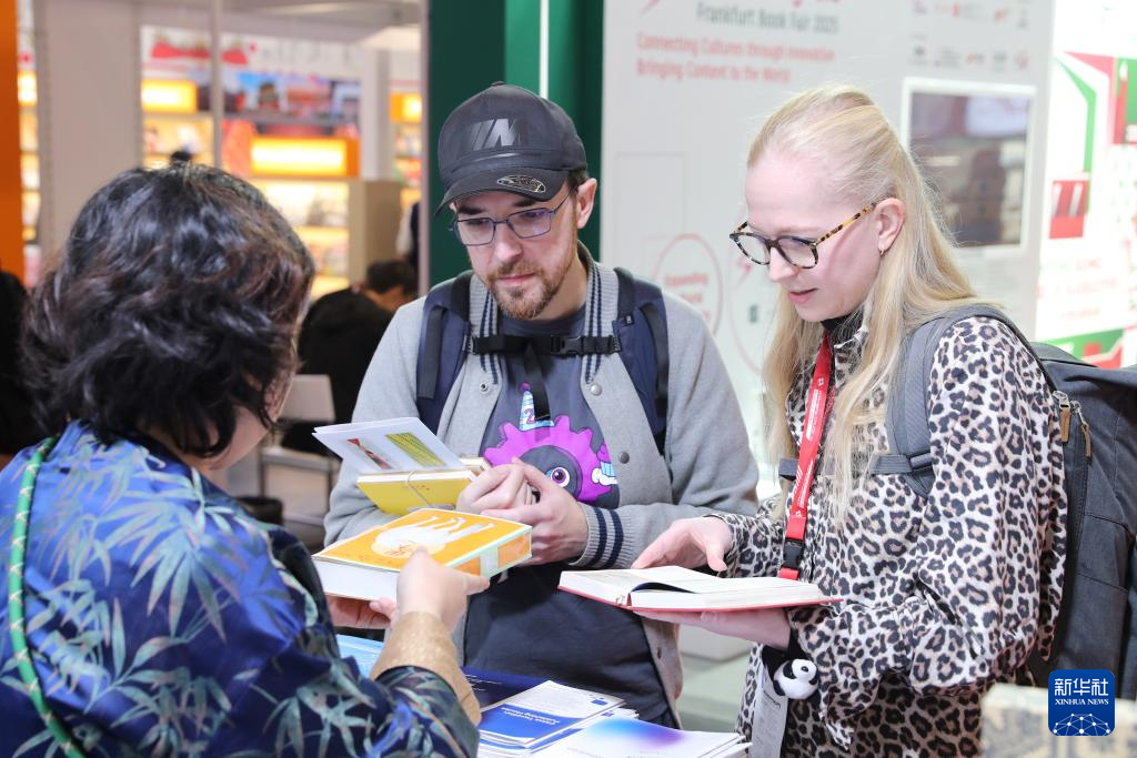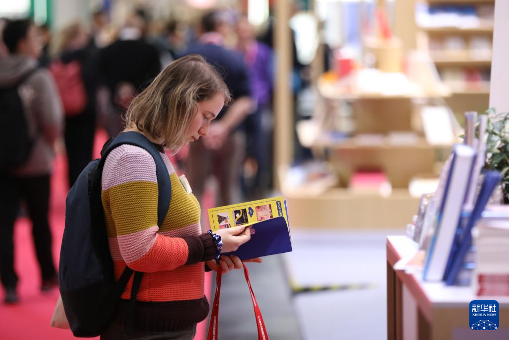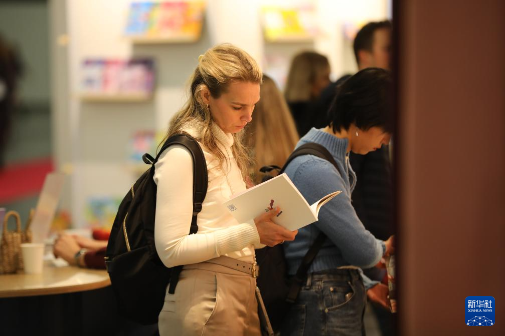 10月15日,读者在德国法兰克福书展中国联合展台翻阅图书。