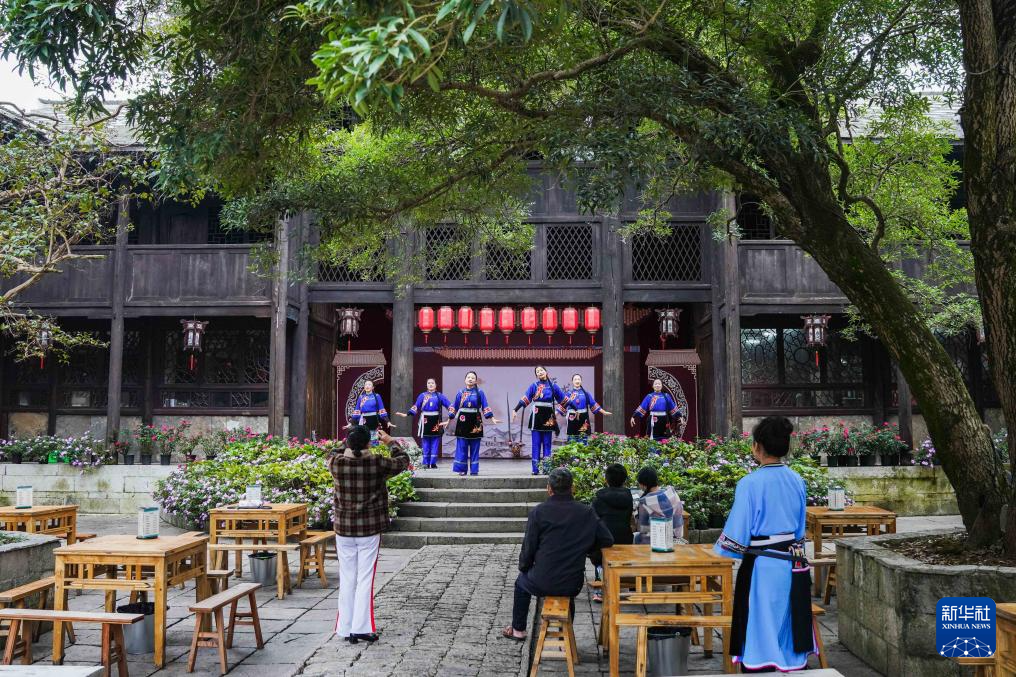 10月24日,人们在贵州安顺天龙屯堡古镇观看演出。