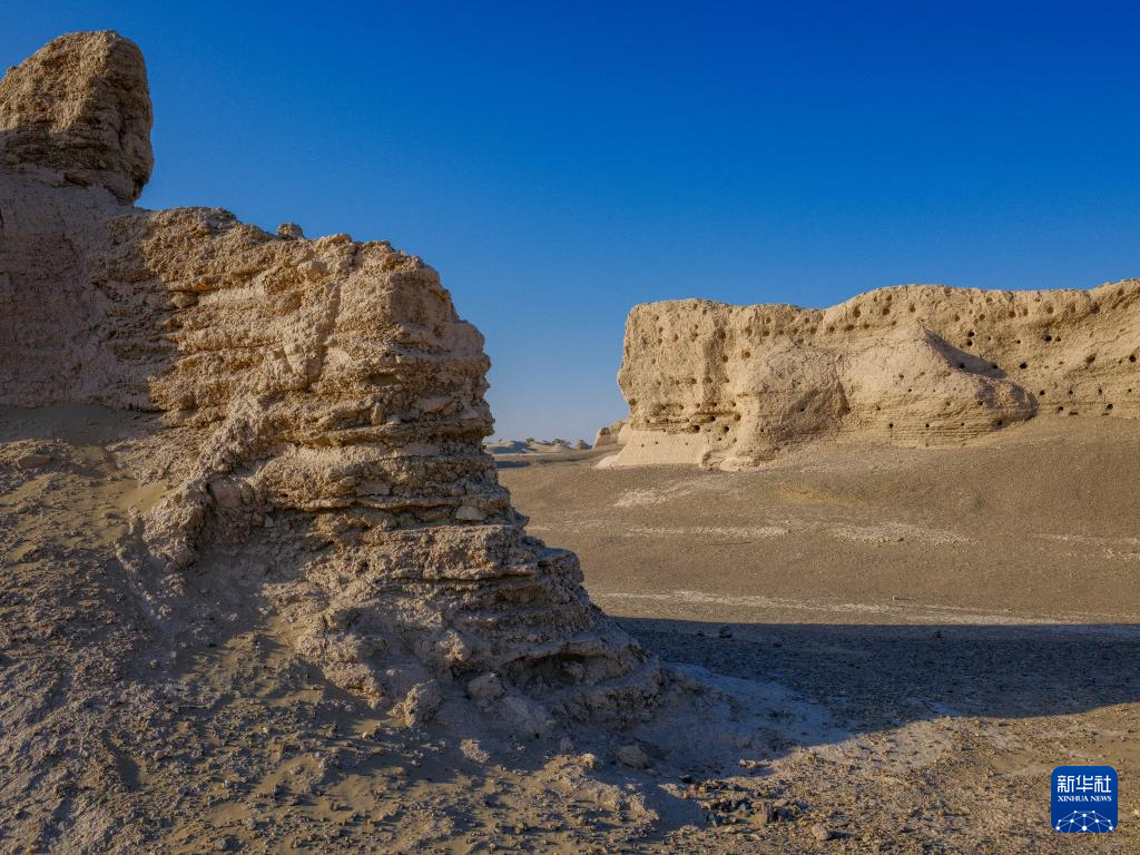 这是11月3日在内蒙古阿拉善盟额济纳旗拍摄的居延遗址中的汉代甲渠候官遗址(无人机照片)。
