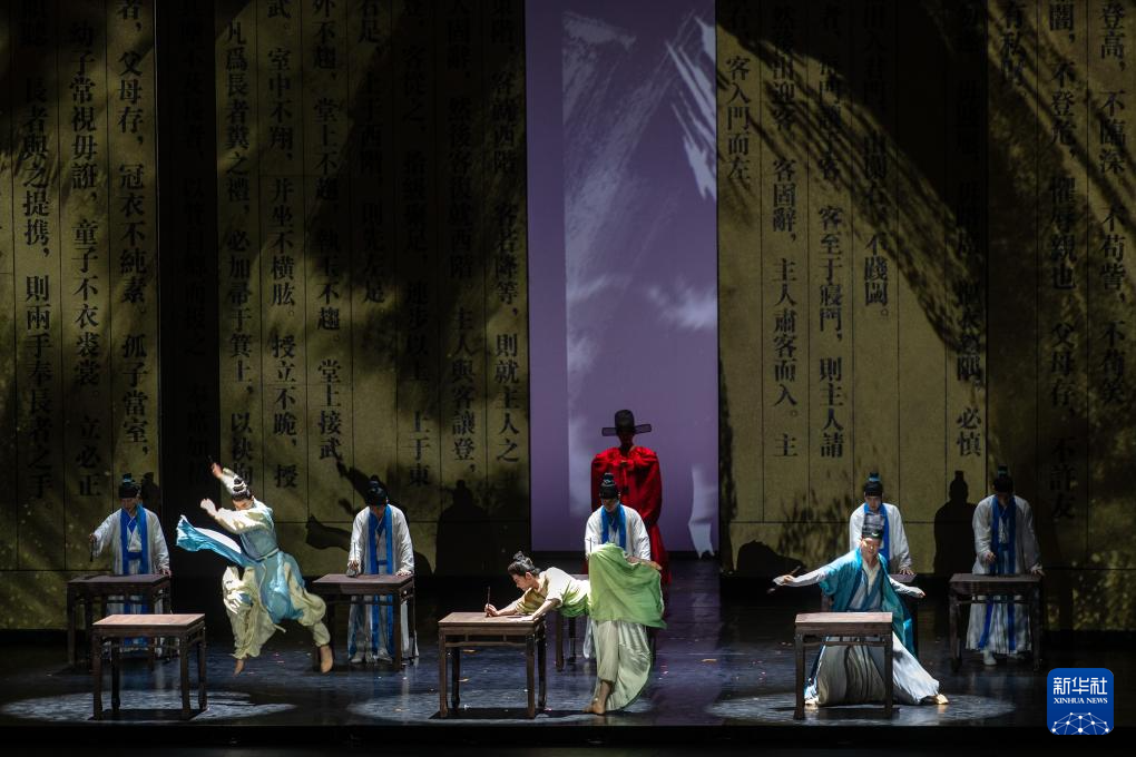 11月28日,中国舞蹈演员在希腊雅典圣诞剧场出演舞剧《天工开物》。