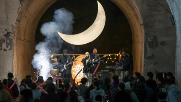 2月4日,一支社火队在甘肃省敦煌市白马塔景区表演划旱船。