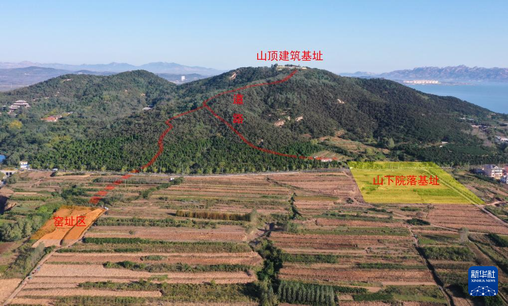 山东青岛市琅琊台战国秦汉时期遗址山顶建筑与山下院落、窑址区位置示意图(资料照片)。