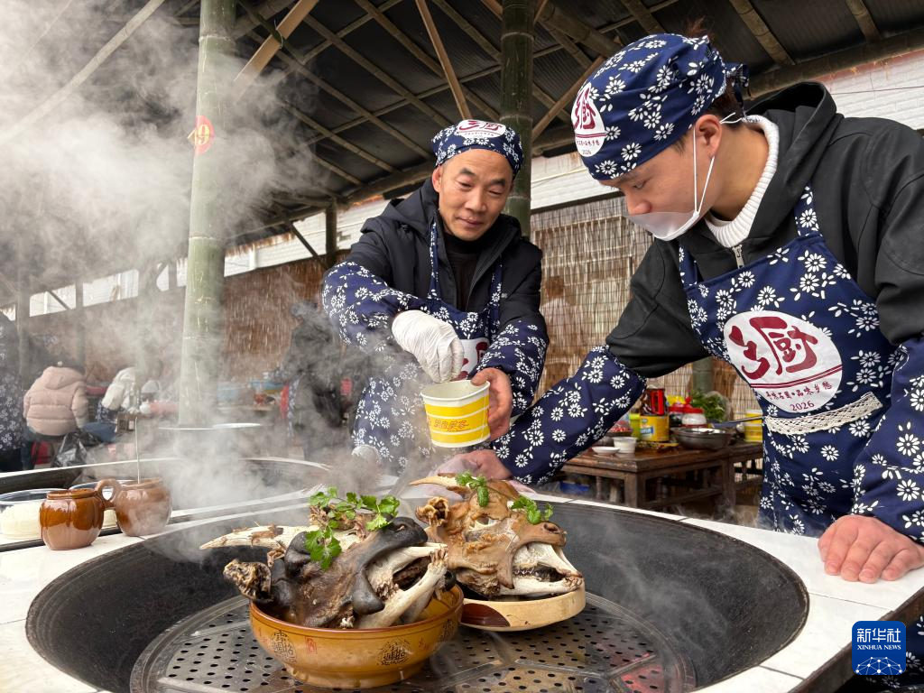 2月4日,贵州省铜仁市石阡县举办“乡厨”大赛,十余支村级参赛队伍进行了厨艺大比拼,现场展示本土特色菜品、传承民间烹饪技艺。活动现场还进行了多项非遗巡演,开设了农特产品和文创产品展销点。