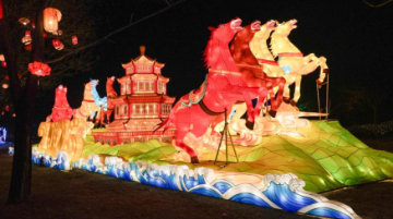 2月10日,观众在台湖公园观赏“龙腾马跃”大型彩灯。