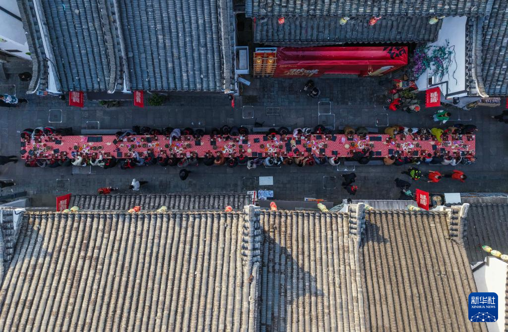 2月11日,一场名为“马上‘宋’福——严州包子宴”的千人长桌宴在浙江省建德市梅城镇严州古城开启,千余名当地群众与各地游客在古街围坐长桌,提前拥抱团圆年味。