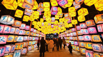 这是2月10日拍摄的西藏唐卡画院展厅。陈列的唐卡中有许多罗布斯达的作品。
