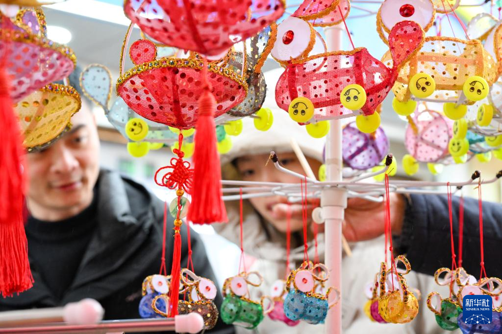 2月28日,游客在江苏省南京市夫子庙花灯市场挑选花灯。
