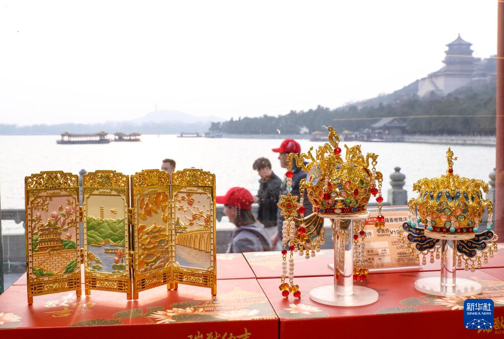 3月23日,游客在颐和园挑选文创商品。