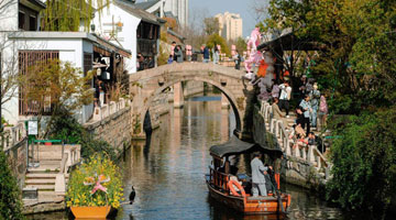 3月30日,游客在位于画匠营子村的“天下黄河第一村”景区游览。
