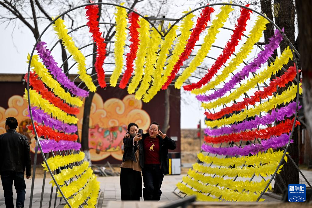 3月31日,游客在位于画匠营子村的“天下黄河第一村”景区游览。