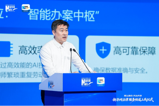 新华网数字经济事业中心赵新宇现场介绍“律师智能服务平台”。