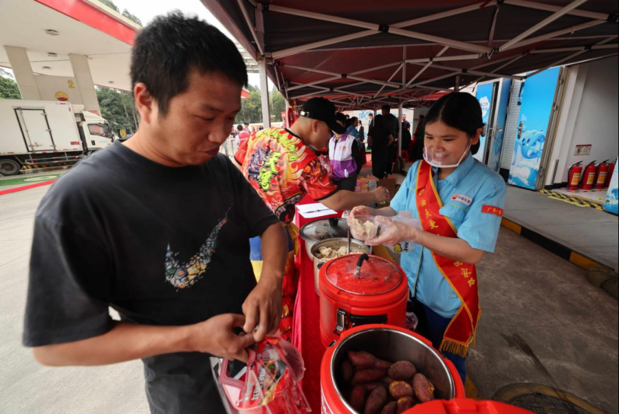 暖心服务,打造旅途中的“家”。中国石油广东销售分公司坚持这样的公益活动已有14年了。今年,广东销售覆盖全省的630座加油站不仅保障油气稳定供应,还为返乡群众与户外劳动者提供热饮、热食、休息等贴心服务,免费发放2.6万份返乡餐食。中国石油浙江销售分公司深耕“司机之家”与“爱心驿站”,匠心营造温馨整洁的“家氛围”,除了提供热茶、应急药品、手机充电等标配服务,部分站点还为货车司机推出高性价比专属餐食,甚至准备了免费生日面、除夕团圆饭,用实实在在的“家味道”温暖人心。