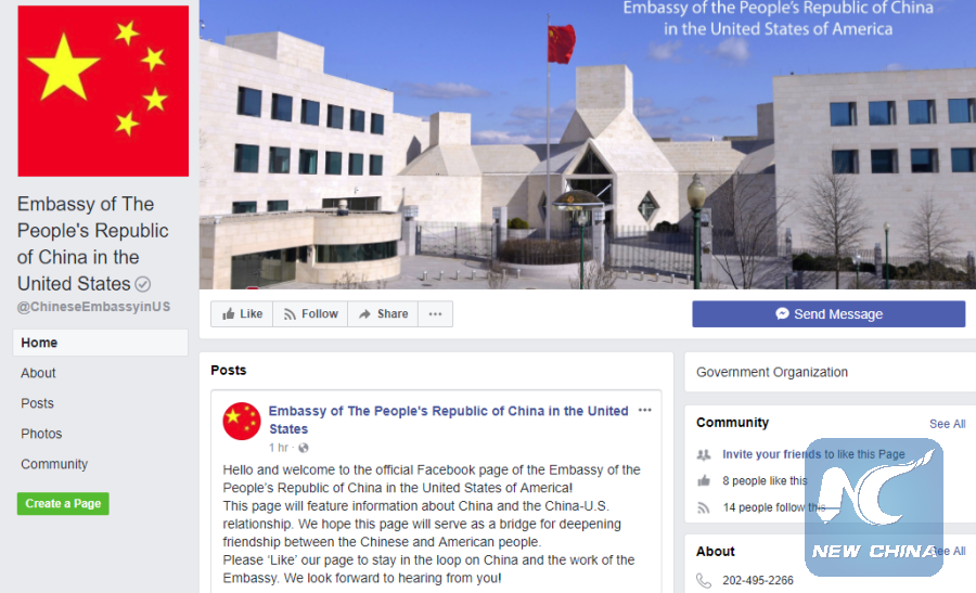Facebook page of the Chinese Embassy in the United States. (Xinhua)