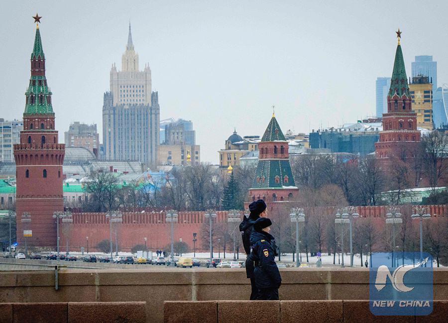 MOSCOW, March 26 (Xinhua) -- The Russian Foreign Ministry said Monday that Russia "strongly protests" diplomats expulsion by the United States and 14 European countries over an ex-spy case, vowing to retaliate.