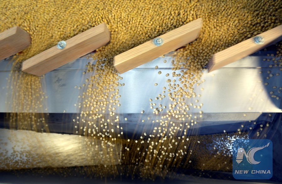 Soybeans being sorted according to their weight and density on a gravity sorter machine at Peterson Farms Seed facility in Fargo, North Dakota, U.S., Dec. 6, 2017. (Xinhua/REUTERS)