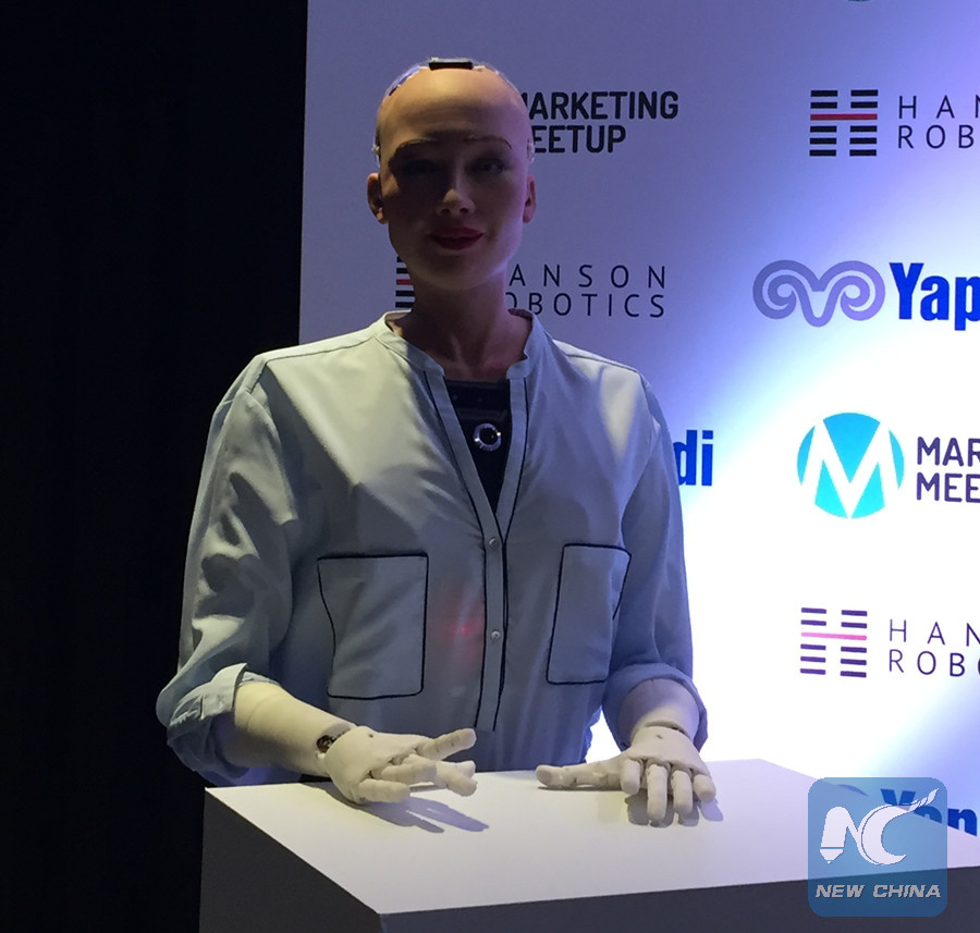 Sophia made the remarks in her appearance at a marketing meeting in Istanbul. On the occasion, she looked in turn at the speakers at the podium and the audience from the floor. She smiled now and then and blinked at a wave at her.