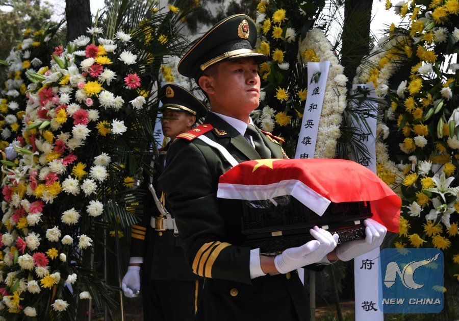 File Photo: The burial ceremony of Shen Liangliang, a Chinese UN peacekeeping soldier killed in a recent terrorist attack in Mali, is held in a martyrs' cemetery in his hometown of Wenxian County, central China's Henan Province, June 13, 2016. (Xinhua/Zhu Xiang)