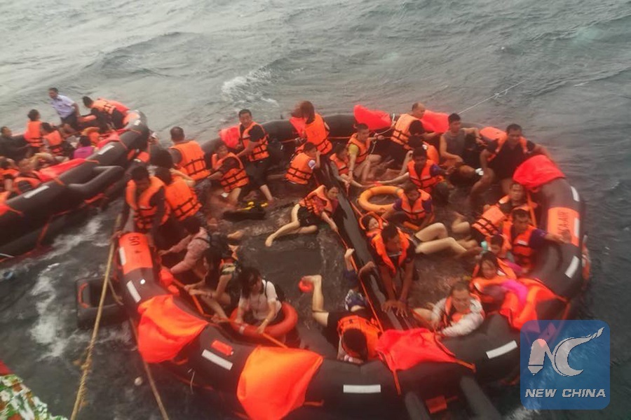 BANGKOK, July 5 (Xinhua) -- Rescuers found a body of a tourist and are looking for another 53 people that are still missing, after three boats overturned in rough seas in Thailand's Phuket province, the governor of Phuket Province was quoted by local media as saying late Thursday.