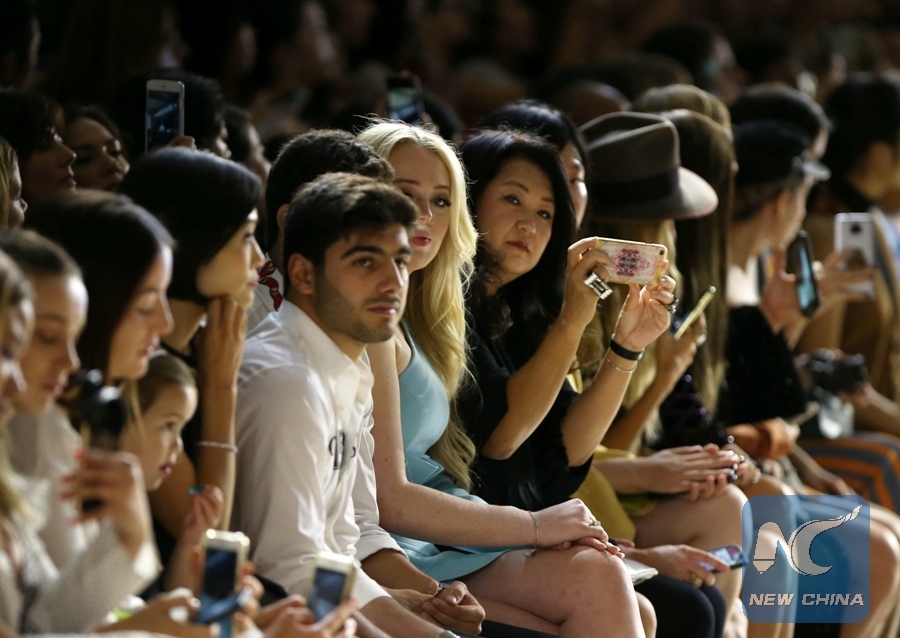 Tiffany Trump (C), U.S. President Donald Trump's daughter, watches Chinese designer Wang Tao's fashion show during the New York Fashion Week in New York, the United States on Sept. 8, 2018. (Xinhua/Qin Lang)