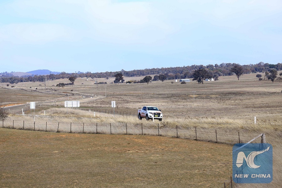 A car drives near the Yass River, one of the worst-hit region by drought in Australia, Aug. 11, 2018. (Xinhua/Pan Xiangyue)