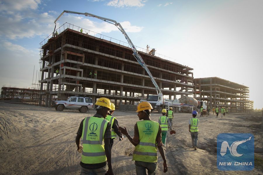 File photo shows workers go about their work at a construction site in Hawassa, Ethiopia, Feb. 3, 2016. (Xinhua /Michael Tewelde)