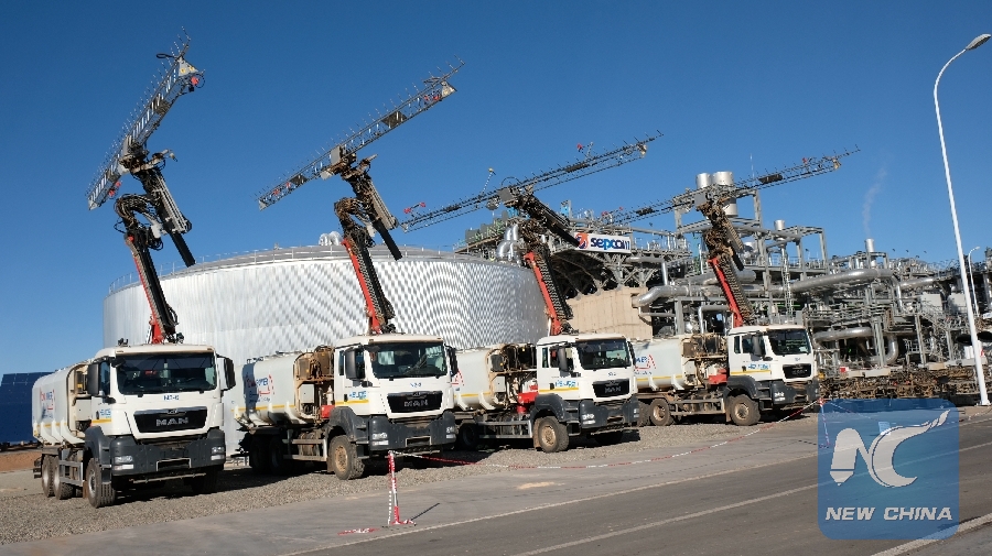 Photo taken on Jan. 10, 2018 shows vehicles specialized in cleaning the heliostats of the NOOR III Concentrated Solar Power (CSP) project in Ouarzazate, Morocco. (Xinhua/Chen Binjie)
